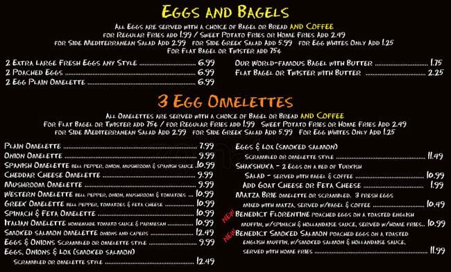 It's your average brunch spot with bagels being the prime focus. There food is pretty good for what it is and it can get busy on the weekends. The only downfall is that the service can be slow. There can be several empty tables but you might be waiting a ... while before being seated (even if you're there only one waiting). Also, on once seated, it can happen where the forget you. Despite all that, you have nice staff who work there. It's worth taking the family out once in a while. Tip: the make your own omelette is cheaper than the set ones (in most cases). Read more