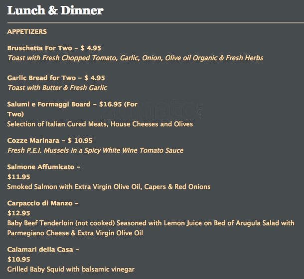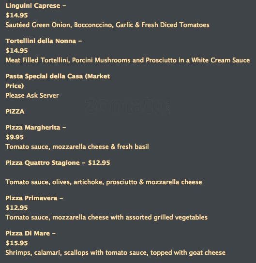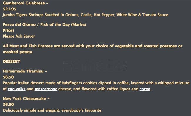 development system Menu of Botticelli Ristorante - Vaughan, Ontario