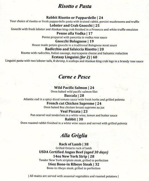 Our experience here was a bit of a mixed bag and I really wanted to love the place. The restaurant is located on the ground floor of what seems to be an office plaza. The interior was bright and comfortable. My wife and I had reservations and were promptly seated upon ... arrival. I would say it was 40% full that evening. Our waiter (whose name escapes me) was great. Very friendly and attentive. He came by several times to check on us throughout the evening. One thing I noted was, as I was going in, I happened to glance in the kitchen and my eyes were drawn to what seemed like broken concrete floor in the kitchen - no tiles. Definitely weird and may have been a turn off if my wife saw it. We ordered the Insalta Arugula and Polenta Fritti. My wife enjoyed the salad and the Polenta Fritti was new to me but I enjoyed it. It was a sizeable portion and quite filling. It came of fresh and hot with a small dip to the side. I found the portion of dip to be too small based on how large the fries were so I couldn't really tell what was in the dip. However I enjoyed the Polenta fries on their own. That coupled with the bread had me worried that I wouldn't be able to enjoy the main. However that was not the case. The place was a little under half full from my estimate but our mains took quite a while to arrive, so filling up on bread and appetizers wasn't an issue afterall. My wife and I had a good conversation so it wasn't so bad but it was definitely a longer than usual wait. Also the online menu is *outdated* and the prices are higher in the restaurant. The online menu really should be updated. I was expecting to pay between $22 - $25 for the mains (based on the online menu) but both our mains were $30 each. Also some dishes are not available and others are new when compared to the online menu. I had the equivalent of an oven roasted half chicken with potatoes - that I don't see listed online - so I don't recall the exact name. My wife had the Linguine Di Mare and it was great that she was able to sub the mussels for calamari. I believe my dish caused the delay because my chicken dish came out piping hot as if it was just made. So that was great and made the wait seem kind of worth it. I liked my dish, the chicken breast was nicely cooked and moist with a nice crispy skin. However the thigh was a little under cooked for my liking and so was the drumstick. My wife thoroughly enjoyed her dish and joked with me that I should have stuck to pasta lol. Overall it was a pleasant evening and I was glad my wife enjoyed it. I was a bit more mixed with my impression. I really want to give it 4 stars but would 3 1/2 stars is more appropriate in my experience for the evening. We may revisit in the future. Read more