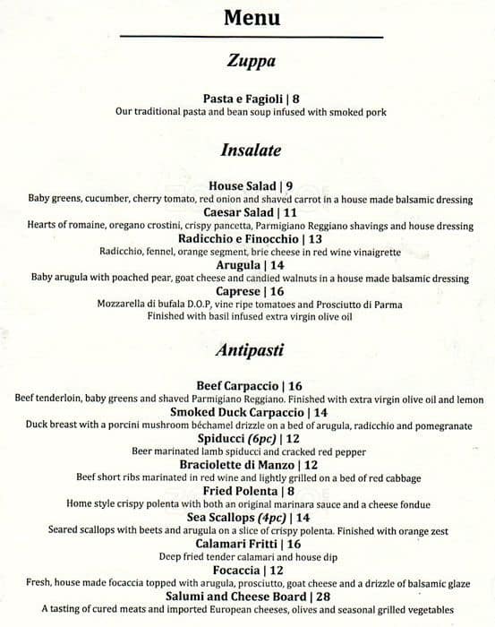A local establishment which has been around for some time. I came here with a group of 10 people for dinner. First i noticed the place has been updated a bit and new management. Service here was excellent. From arrival we were seated and served with excellent timing. The atmosphere has been updated ... from a few years ago but not overly done. Had the salami and cheese board to start. Unfortunately my least favorite dish of the night and I hope they fix it. Fried calamari was beautiful. Crisp and not oily. Served hot and plenty of it for an appetizer. Then we moved to the pasta which was beautiful. Well made and well plated. Not just a hunk of pasta in a bowl. So portions of pasta are normal size for Toronto but not the usual heaping bowl typical of Woodbridge. The steak dinner was made to order. Nice and well seasoned. For dessert I had the Tiramisu which was made in a modern dome and had a bit of gelato on the side. Very impressed. Espresso was spot on. Overall well priced for what we got as a group with everything. Great place for all occasions including family. Happy with the new management. I hope they do well here. Give them a visit if you havent been in a while. @foodreviewca Read more