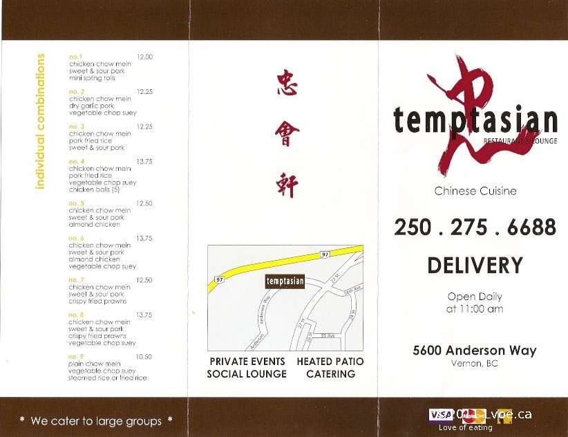 Check out TOP-10 Best American restaurants in Vernon, British ColumbiaReviews for Temptasian Restaurant in Vernon, British Columbia