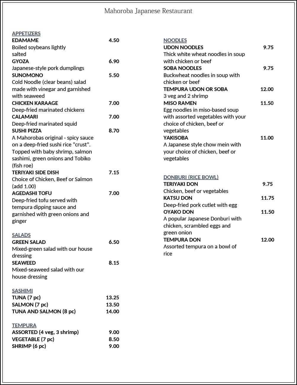 Mahoroba is a hidden gem nestled in Vernon, British Columbia, offering an authentic Japanese dining experience. This cozy eatery caters to those seeking traditional flavors, boasting a menu filled with expertly prepared sushi, comforting ramen bowls, and a variety of classic Japanese dishes. Perfect for food enthusiasts eager to explore rich, genuine tastes in a welcoming atmosphere.