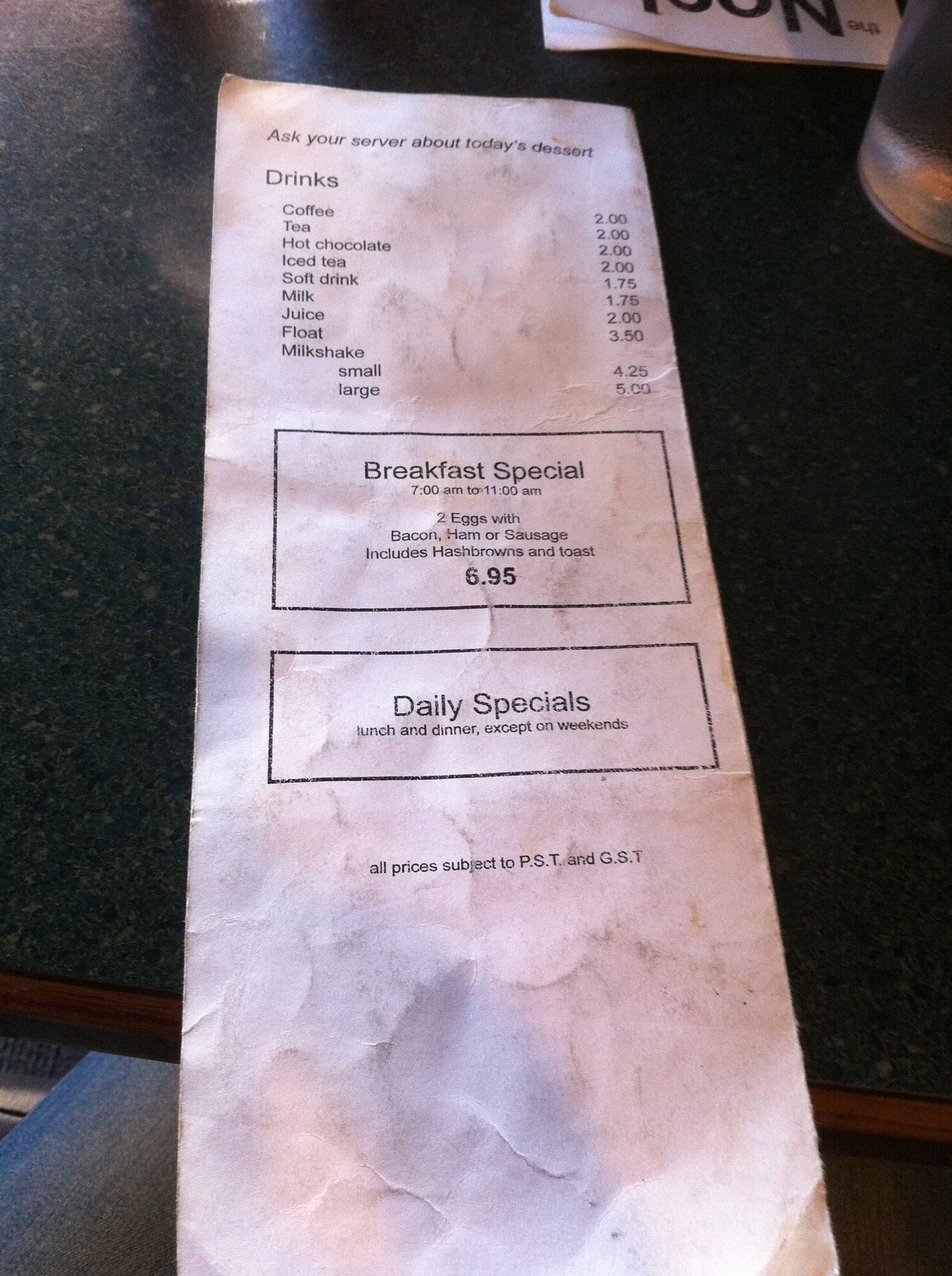 had the steak and eggs with my choice of fries. Everything was delicious but the steak was nothing special, I’d probably just not get steak next time BUT it’s hard to find a good steak and it was still pretty good. A little overpriced for two people.