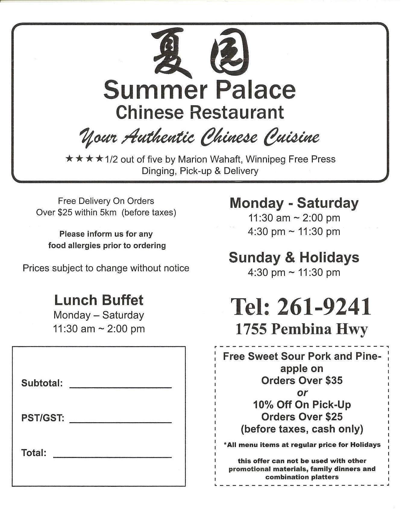Summer Palace Chinese Restaurant - Winnipeg, Manitoba