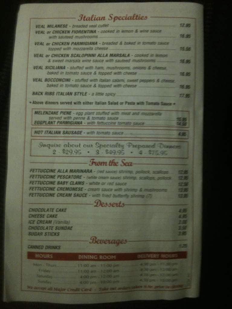 Fantastic Place for Locals looking for reasonably priced authentic Italian Restaurant! Pasta with any sauce substitution available. Upon request owner/manager acommodated with more sauce and extra breads! He also mixes a mean ceasar. Cost for 2 pasta and a main dish with a few drinks = $100 PS. Tried multiple lunch take outs but ... dine in experience was better. Read more