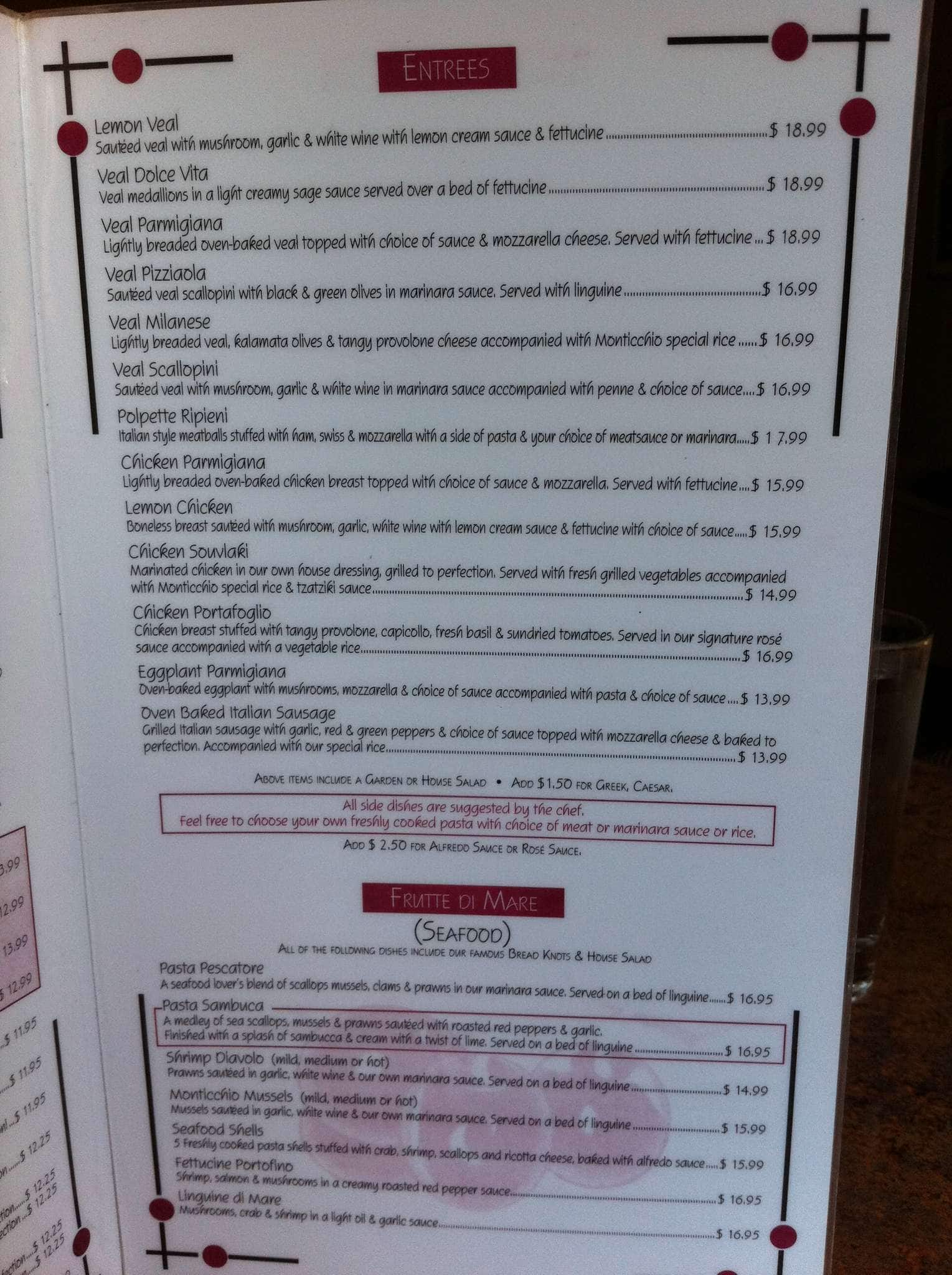 If you are looking for delicious Italian food at an affordable price, then Monticchio’s is the place for you. We celebrated a family birthday here recently and we are already planning a return visit! We ordered the Pane Fritto for an appetizer, and it was really tasty. ... We ordered Caesar salad and the House salad, and the produce was so fresh! My husband said that he was transported to a garden in Italy when he bit into the tomato! Our entrees were: Vodka Penne, Chicken Parmesan, Cannelloni, and the Veal Medallions. All meals were delicious and portions were generous. For dessert we tried the Carrot-cake Cheesecake and the Tiramisu, and they were both delicious as well. The service was good and the overall atmosphere was good too, but nothing fancy. Casual dining works very well for our family though when the food is so good! Read more