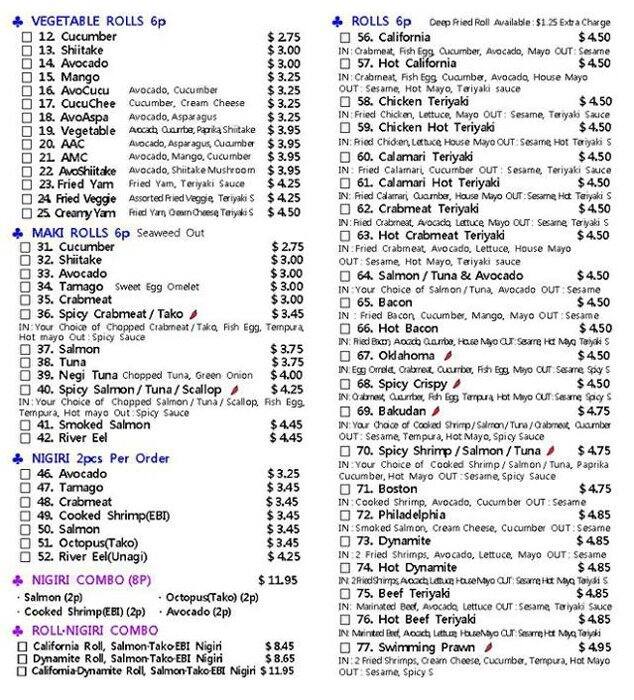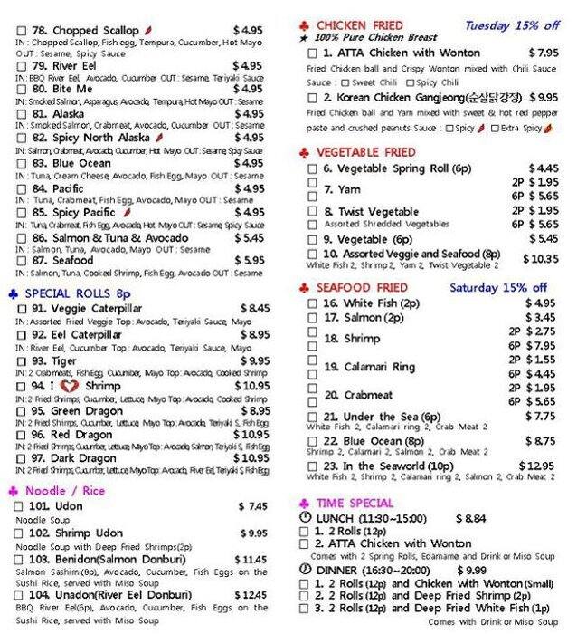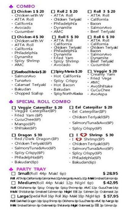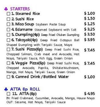 development system Menu of Atta Sushi - Winnipeg, Manitoba
